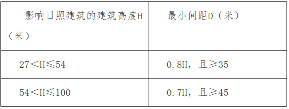 (一)高层住宅建筑与其北侧、东(西)侧住宅建筑平行布置时(夹角≤45°)的间距,按照表一规定控制;