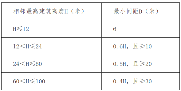 (二)非住宅建筑与非住宅建筑长边的间距按照表二规定执行,短边的间距需满足消防安全的要求。