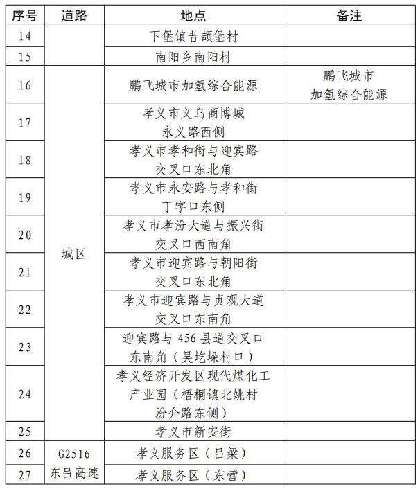 离石区综合能源站布局21个,其中,高速8个,国道上8个(G209上1个,G307上7个),城区5个。