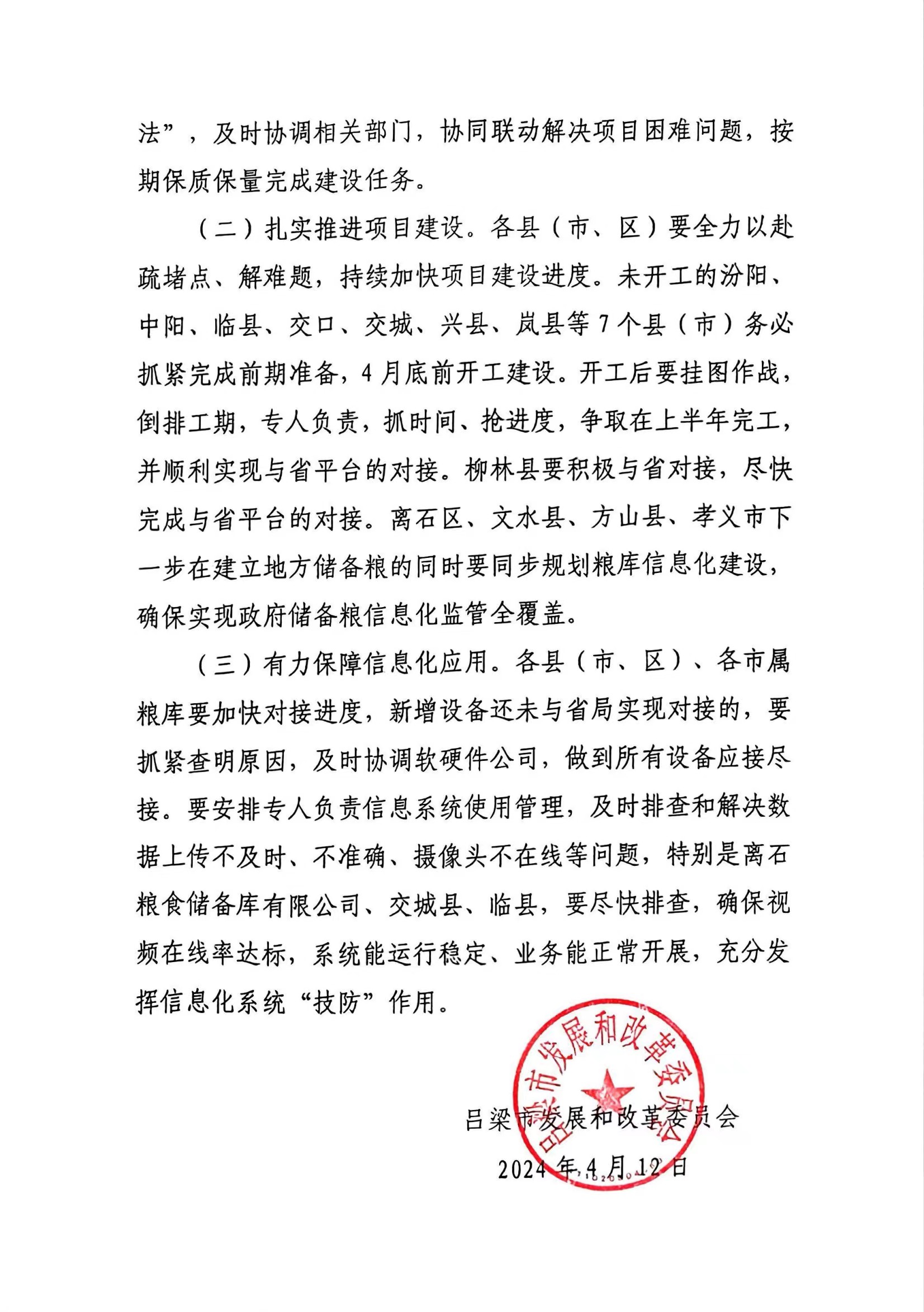 发文字号: 吕发改粮储发〔2024〕97号 发布日期: 2024年04月12日