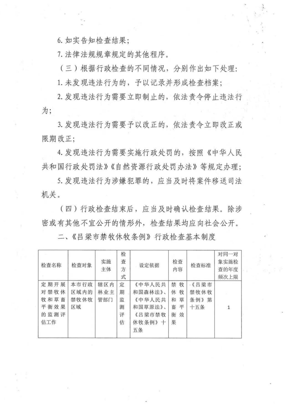 标      题: 吕梁市规划和自然资源局关于印发《吕梁市禁牧休牧条例》行政检查基本制度的通知