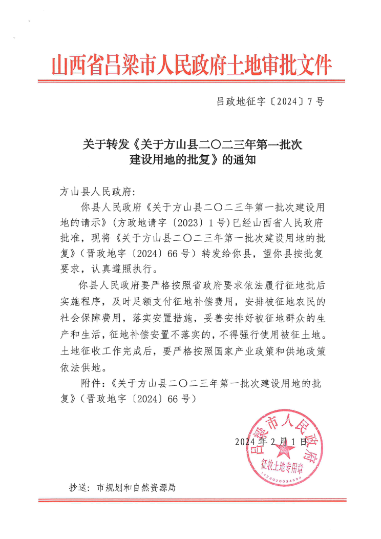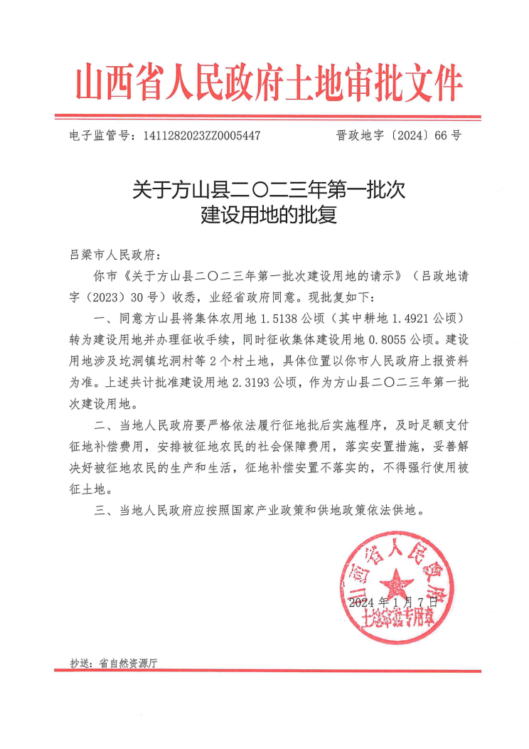 关于方山县二零二三年第一批次建设用地的批复