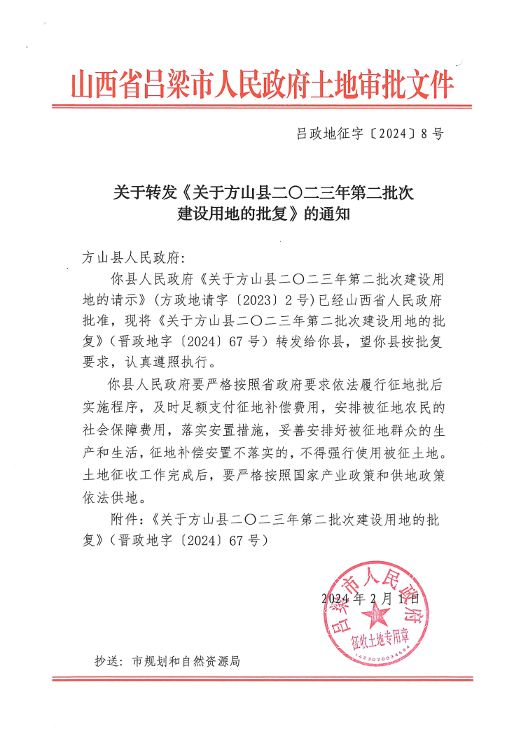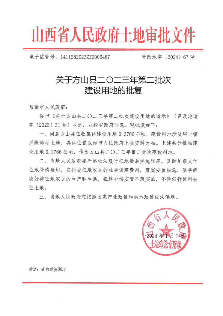 关于方山县二零二三年第二批次建设用地的批复