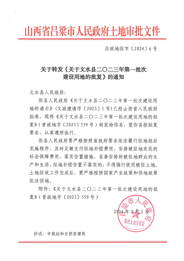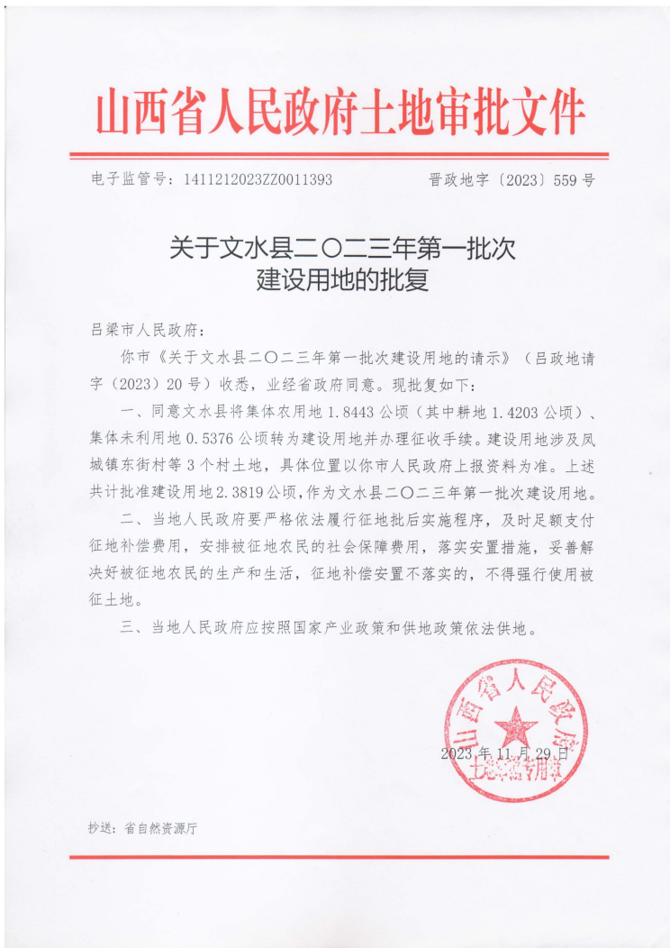 关于文水县二零二三年第一批次建设用地的批复