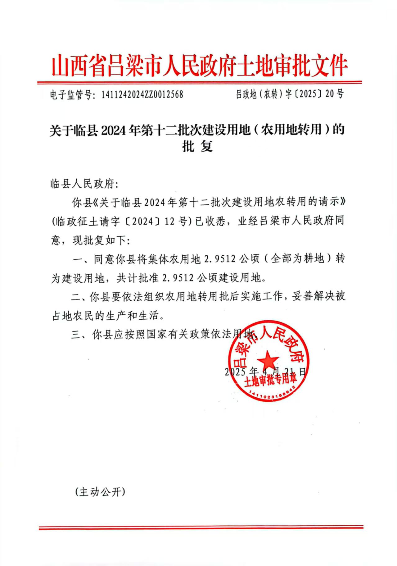 关于临县2024年第十二批次建设用地(农用地转用)的批复