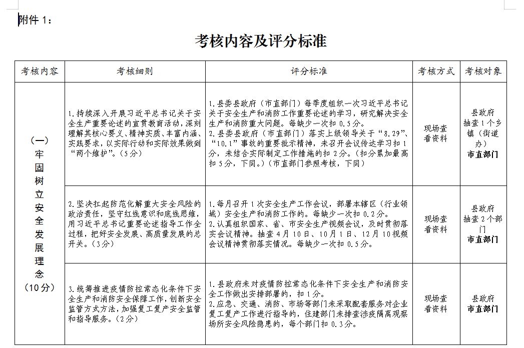 附件:1.考核内容及评分标准