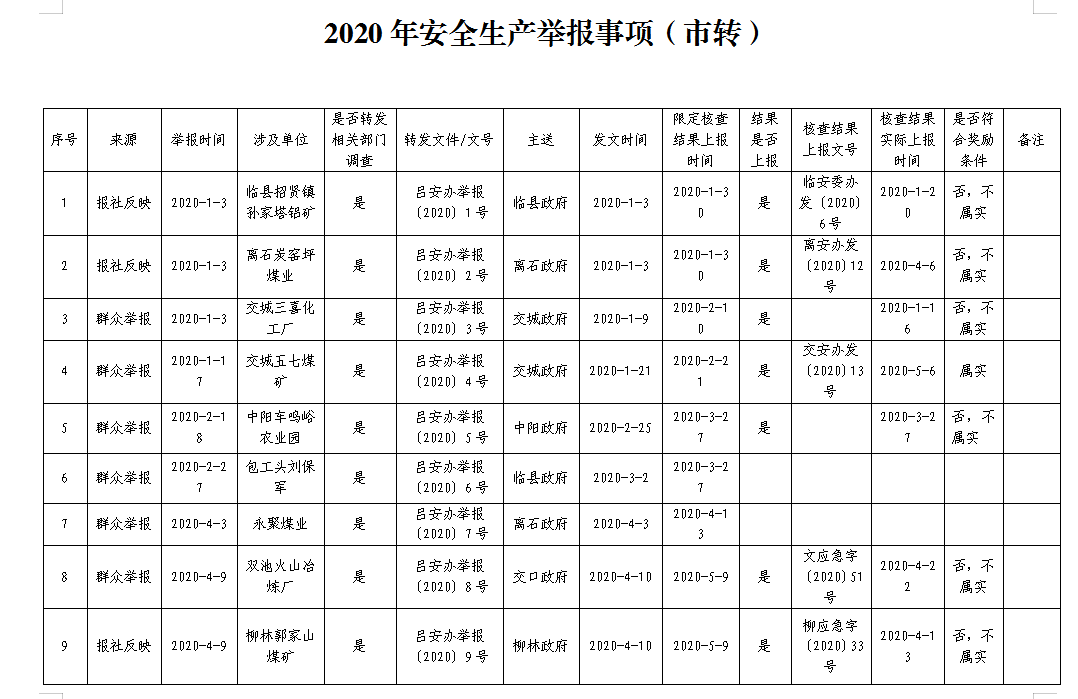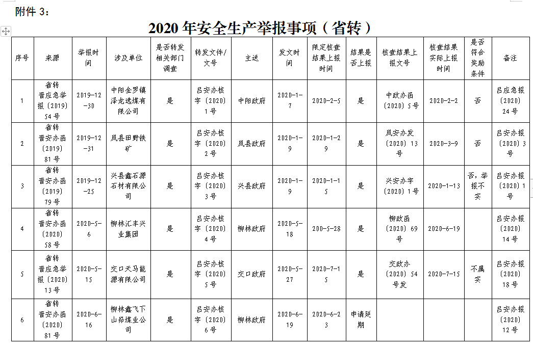 3.2020年安全生产举报事项