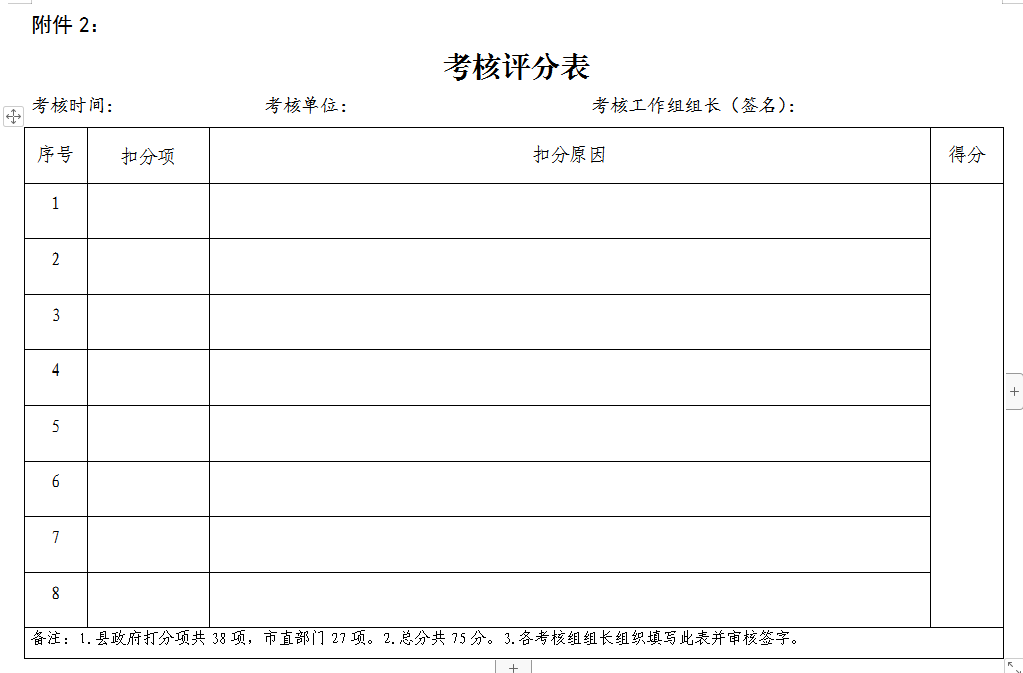 2.考核评分表