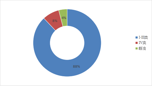 2025年9月所监测的25个断面中,水质优良(Ⅰ-Ⅲ类)的断面占比为88.0%;轻度污染(Ⅳ类)的断面占比为8.0%;中度污染(Ⅴ类)的断面占比为0.0%;重度污染(劣Ⅴ类)的断面占比为0.0%;断流的断面占比为4.0%。全市总体水质良好,主要污染指标为氨氮和高锰酸盐指数。