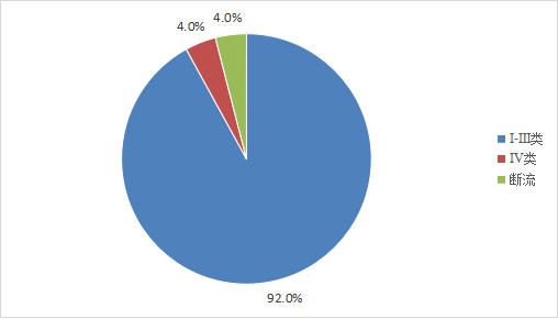2026年2月所监测的25个断面中,水质优良(Ⅰ-Ⅲ类)的断面占比为92.0%;轻度污染(Ⅳ类)的断面占比为4.0%;中度污染(Ⅴ类)的断面占比为0.0%;重度污染(劣Ⅴ类)的断面占比为0.0%;断流断面占比为4.0%。全市总体水质优,主要污染物为总磷。