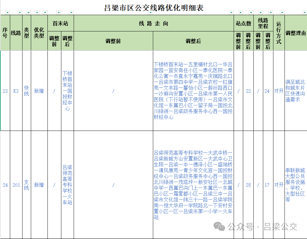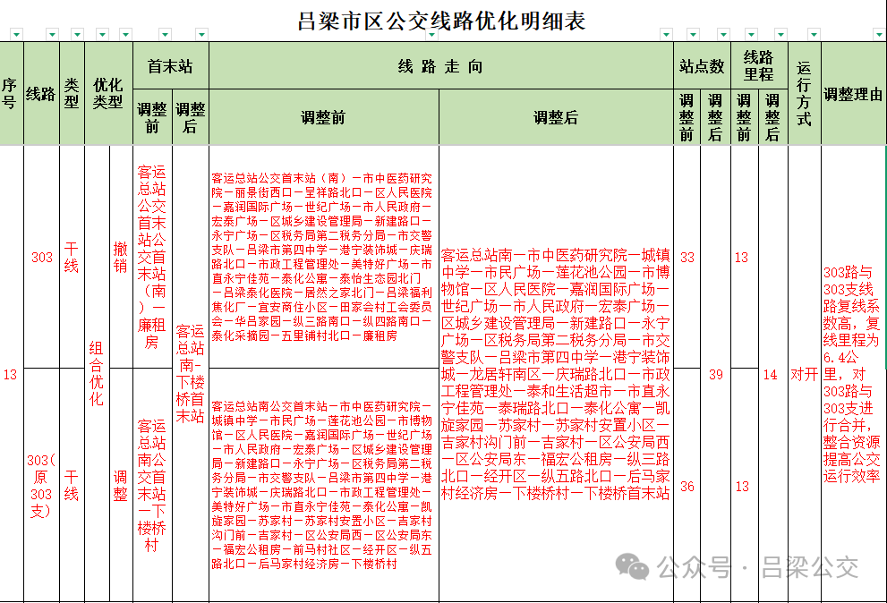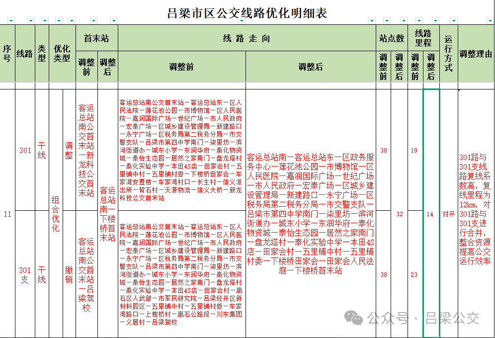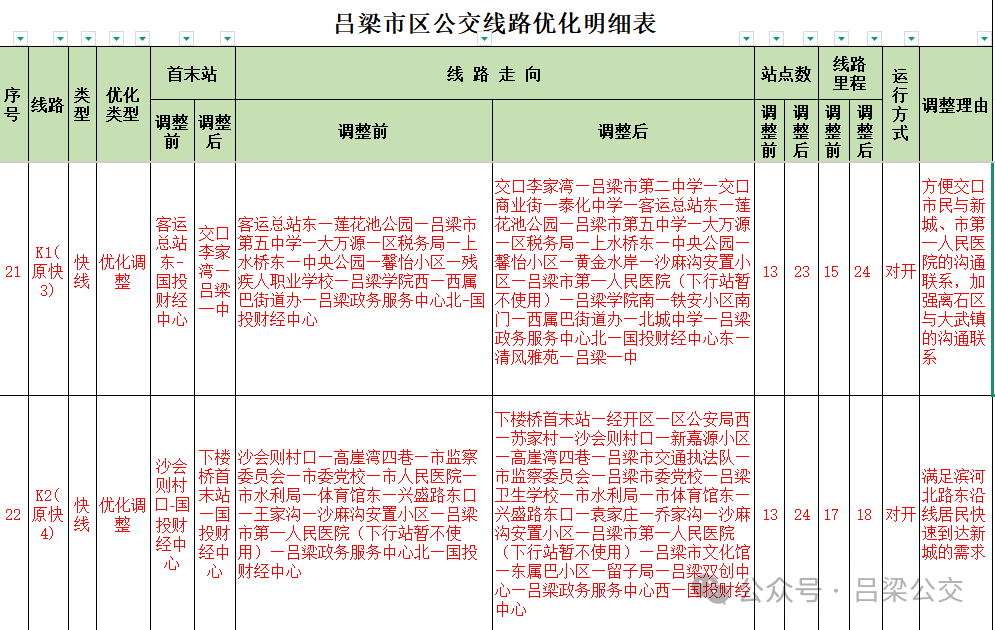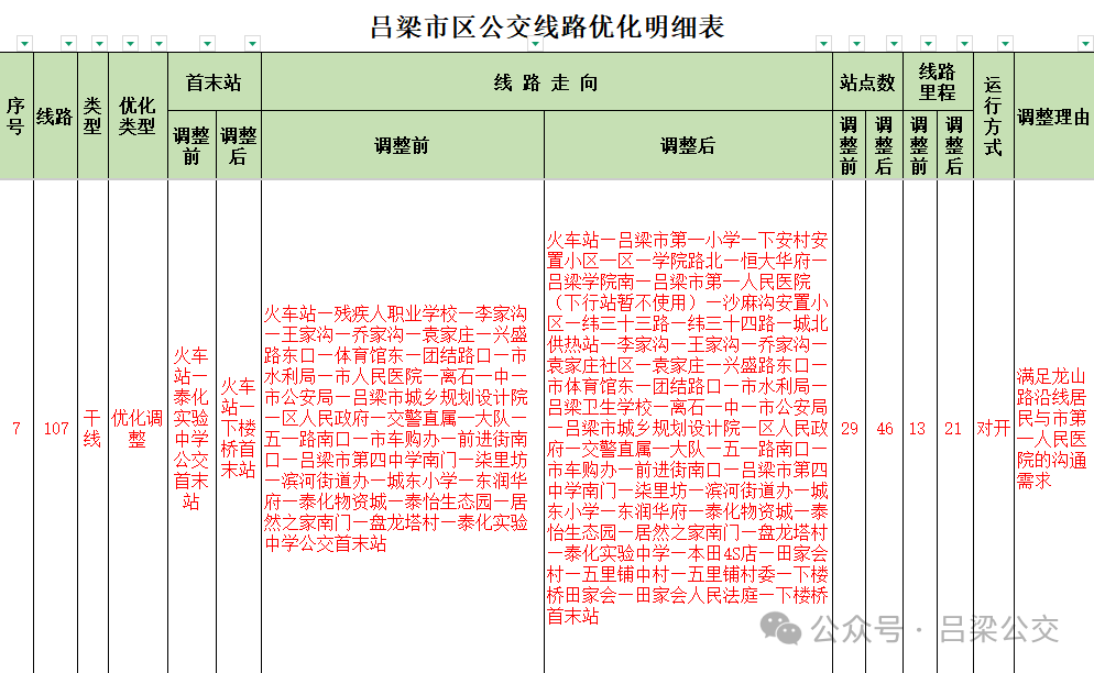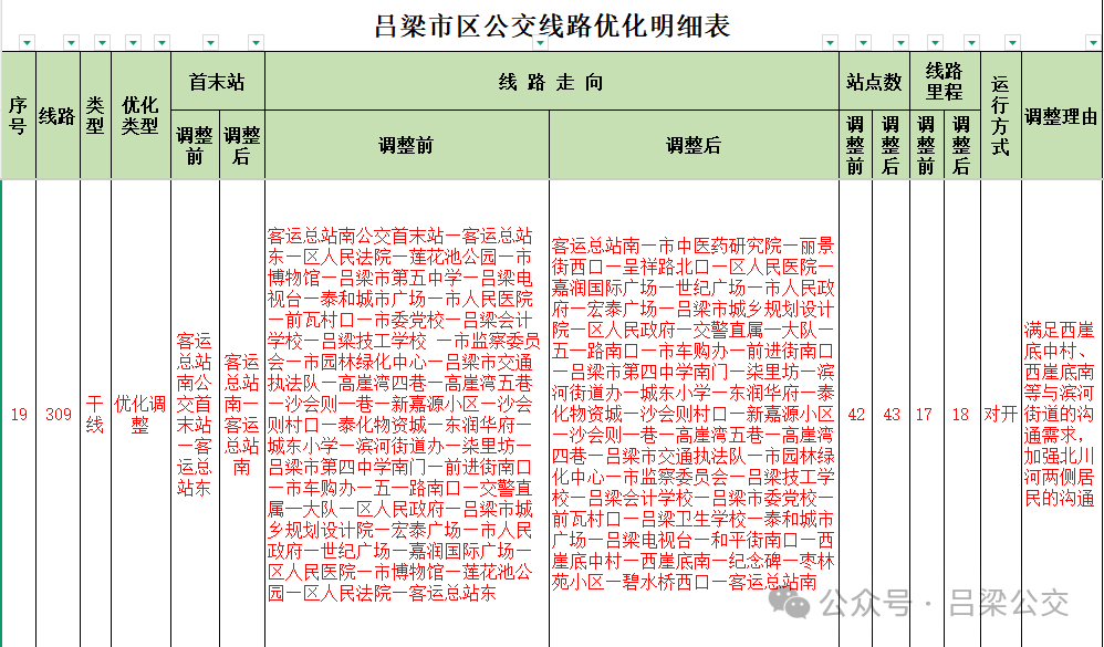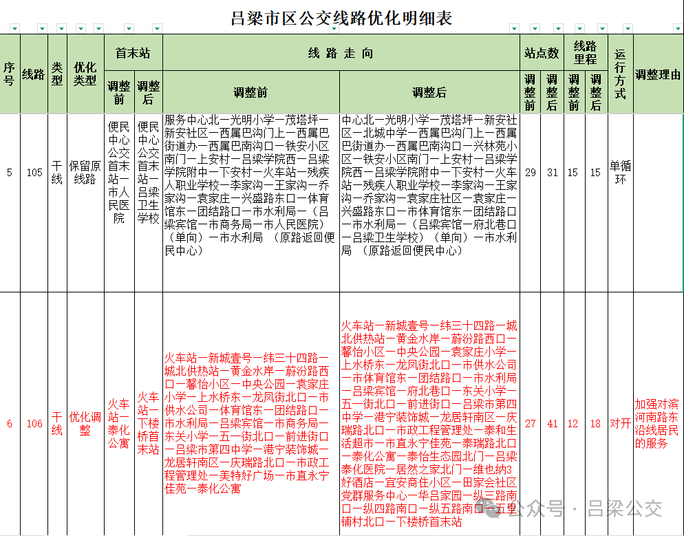 附件: 吕梁市区公交线路优化明细表