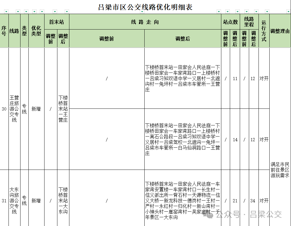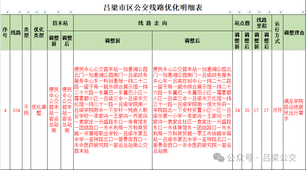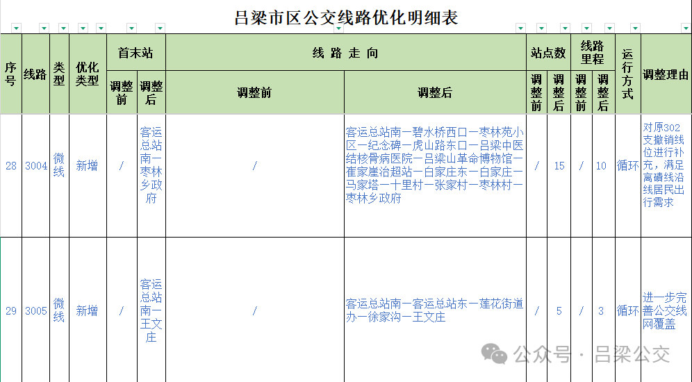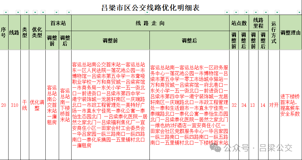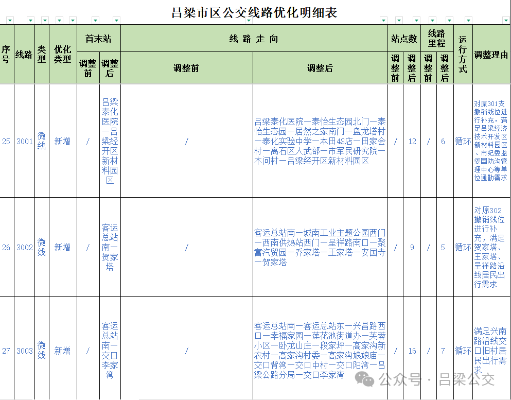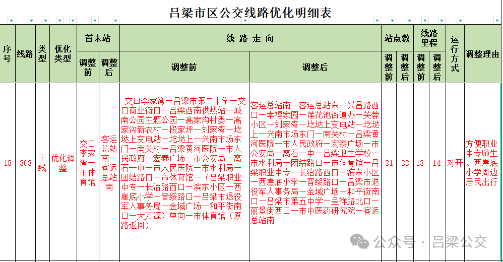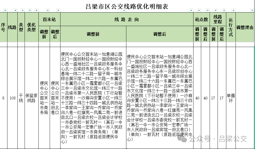 附件: 吕梁市区公交线路优化明细表
