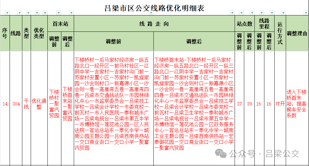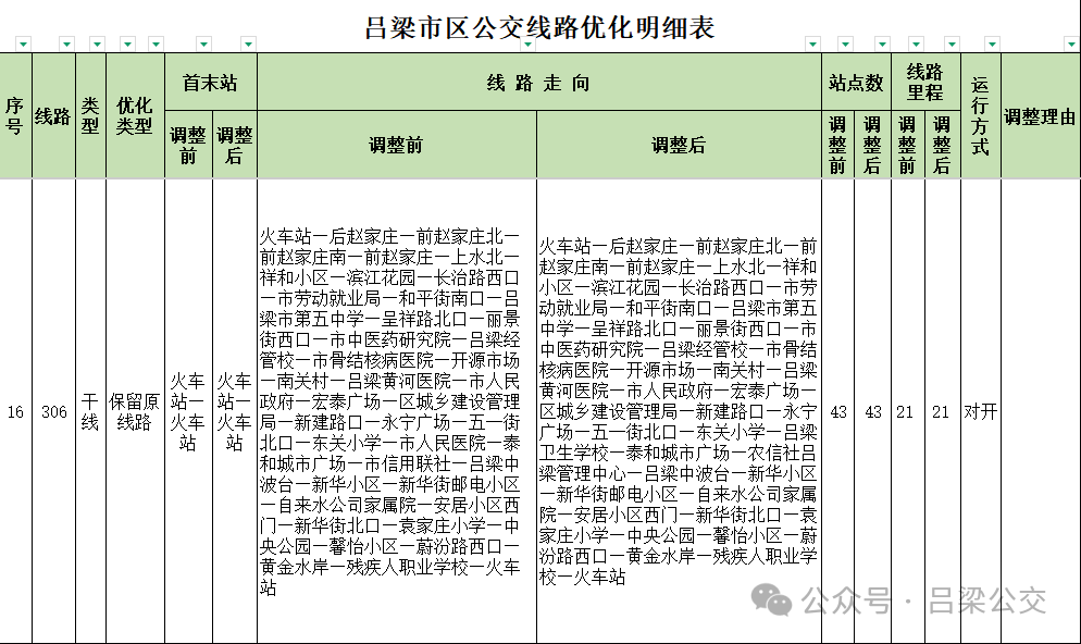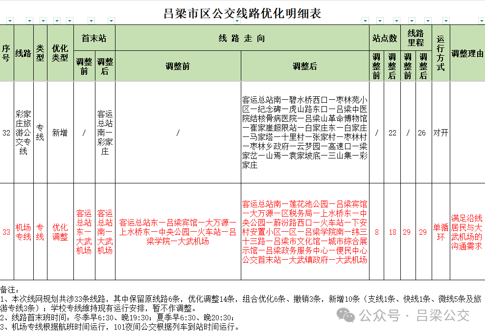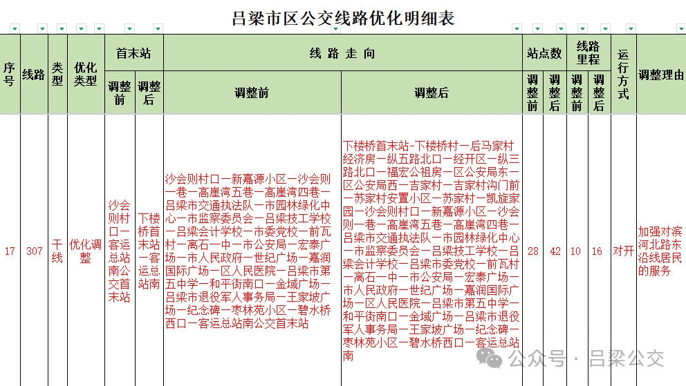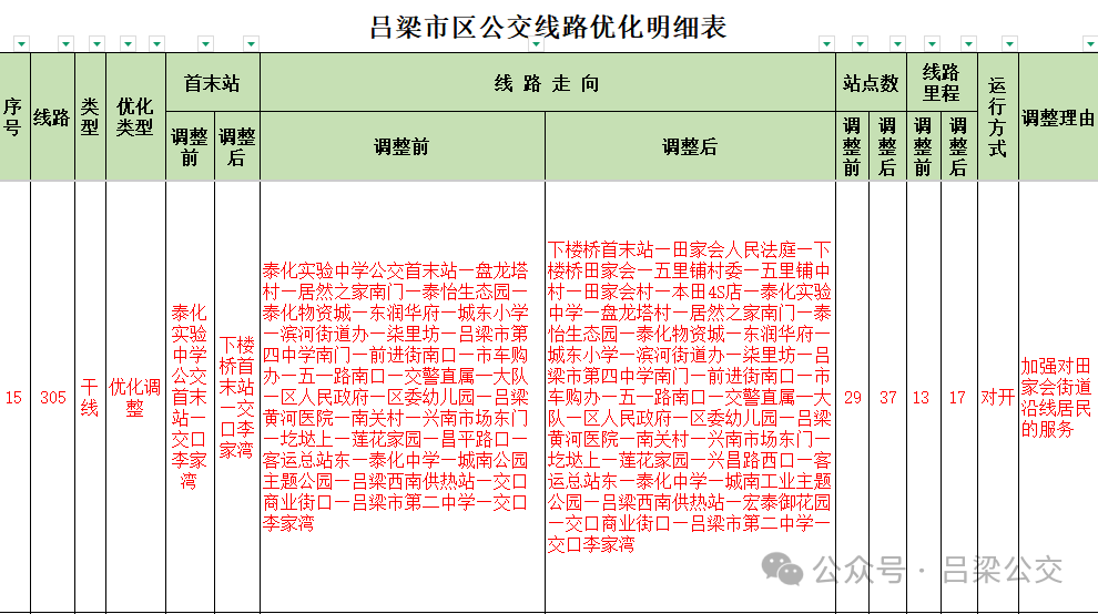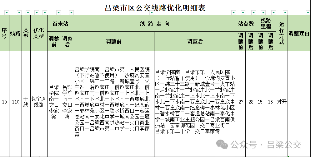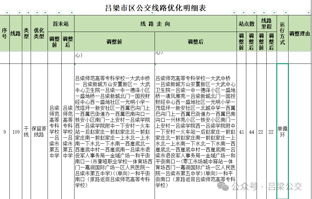 附件: 吕梁市区公交线路优化明细表