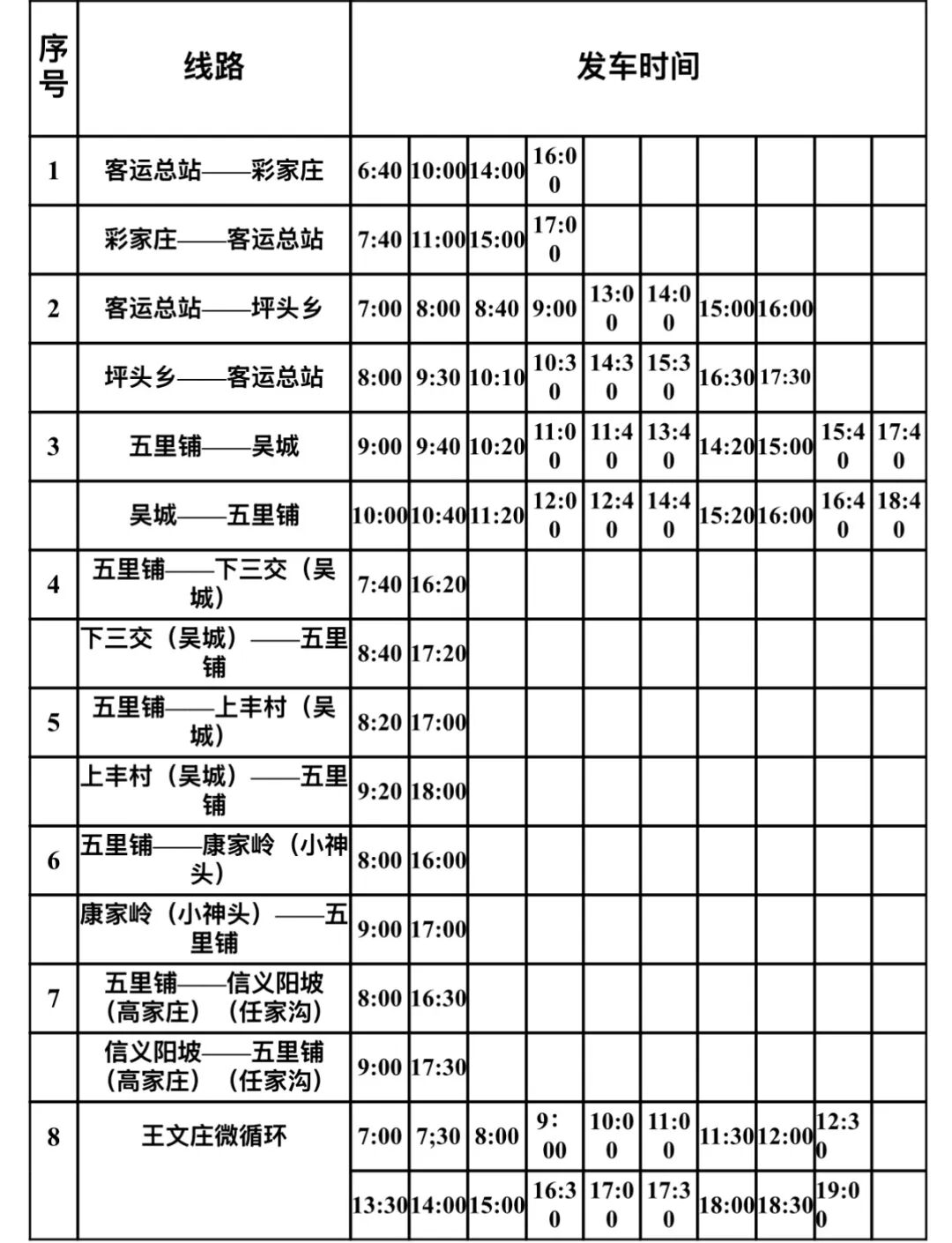 备注:由于城乡路况特殊,雨雪天气所有车辆停运。票价为一元,已无人售票形式,乘客上车投币,也可
