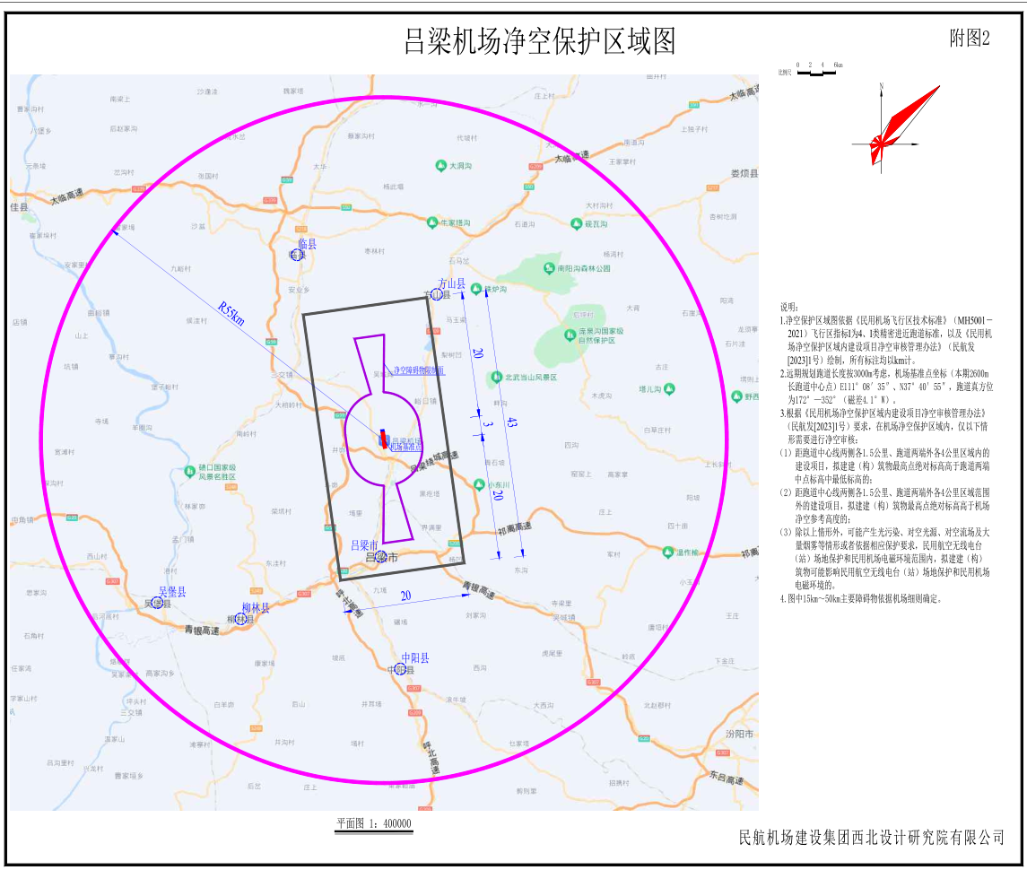 为切实保障民用航空飞行安全和机场净空安全,依据《中华人民共和国民用航空法》《民用机场管理条例》《山西省民用机场净空和电磁环境保护办法》《吕梁大武机场净空及电磁环境保护管理办法》等法律法规要求,吕梁机场净空保护区域(以机场为中心55公里范围)(见附图)禁止从事的行为如下: