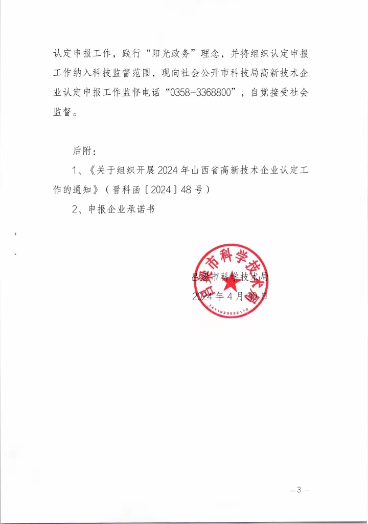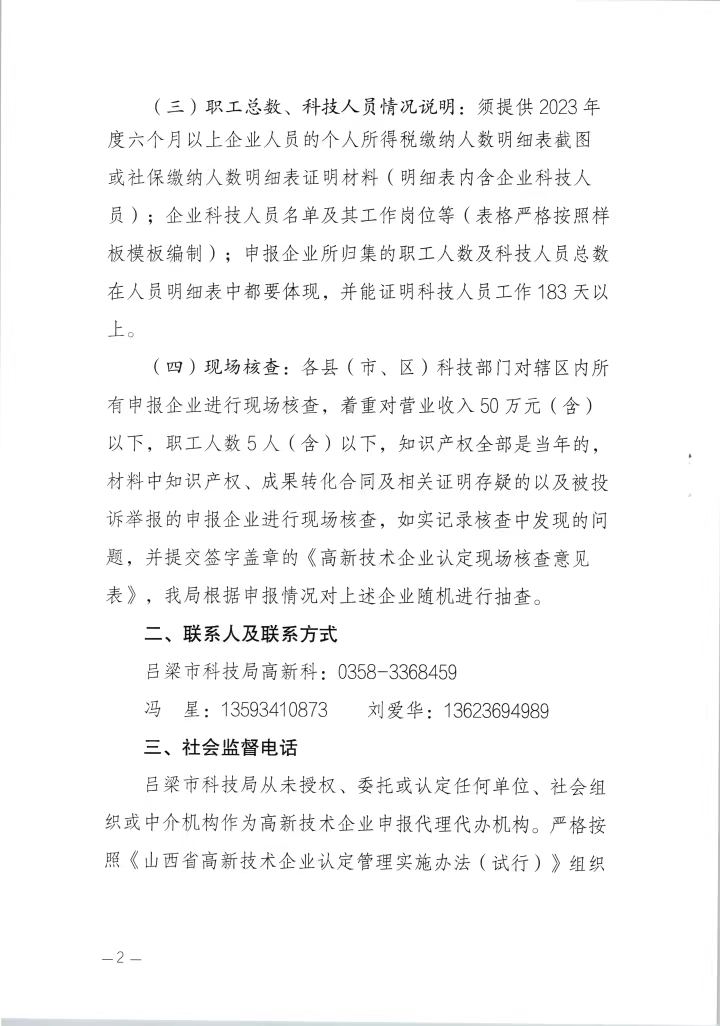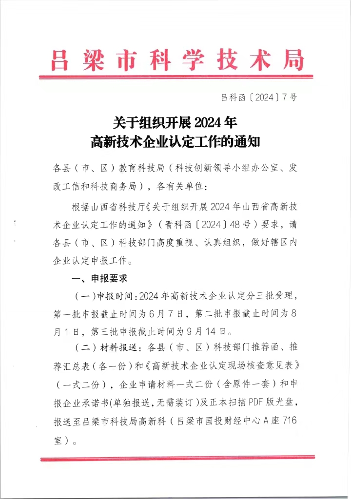 标      题: 吕梁市科学技术局关于组织开展2024年高新技术企业认定工作的通知