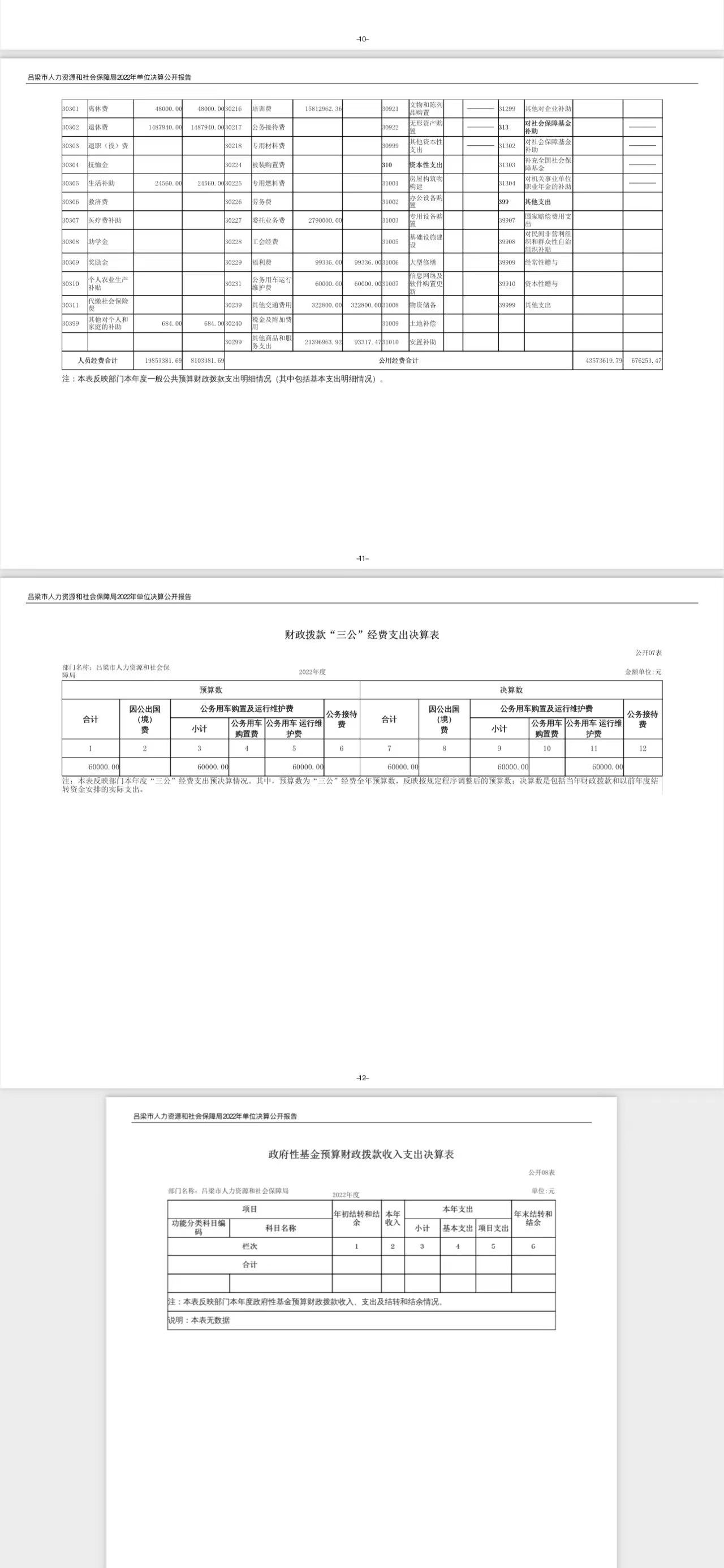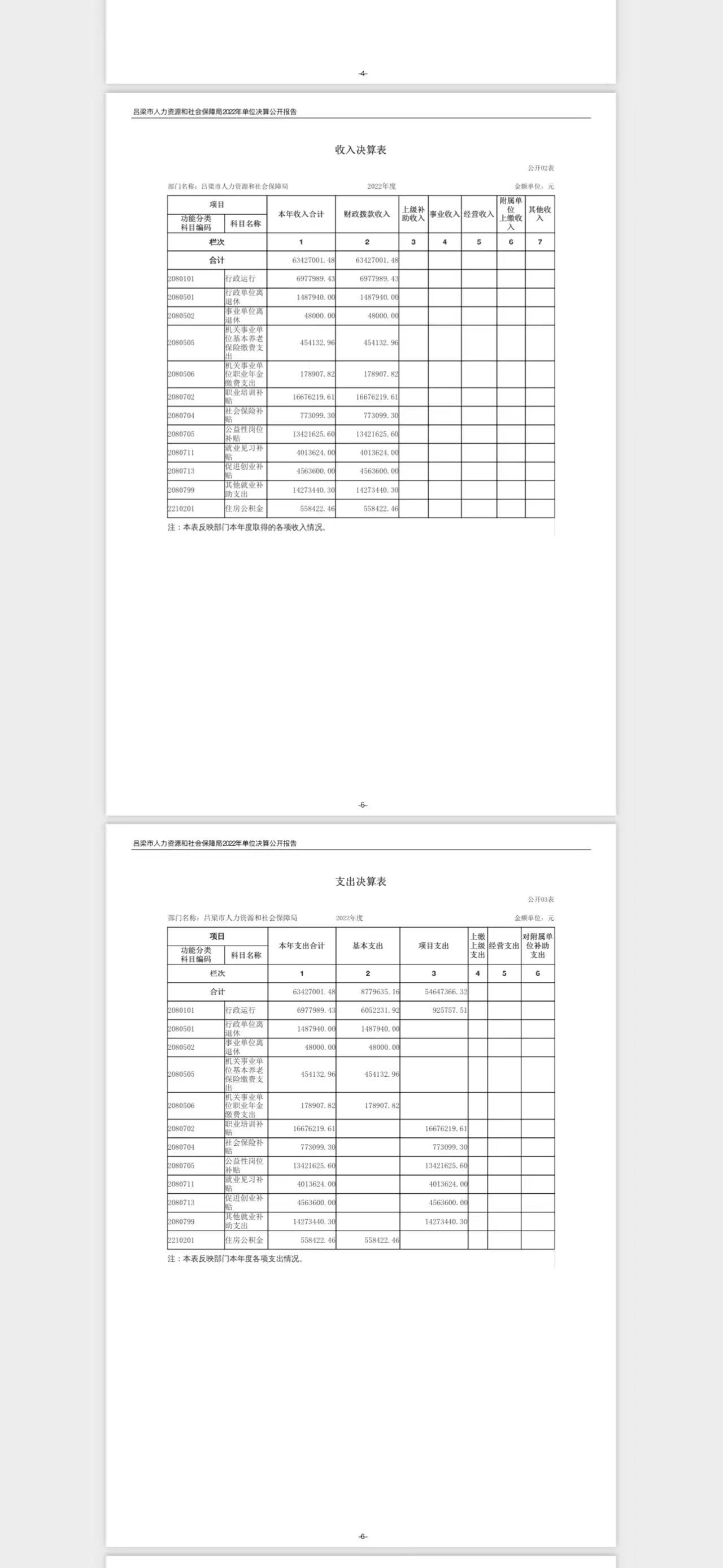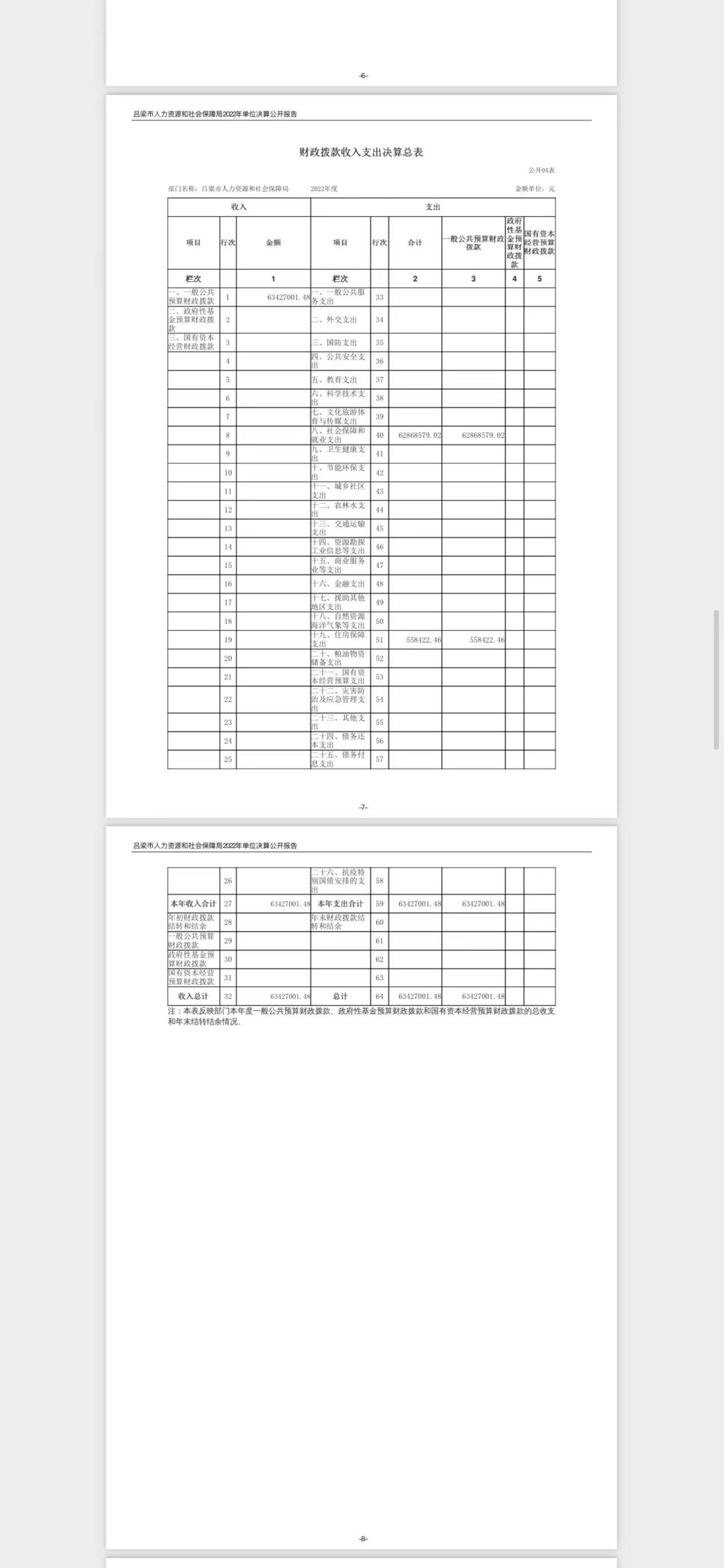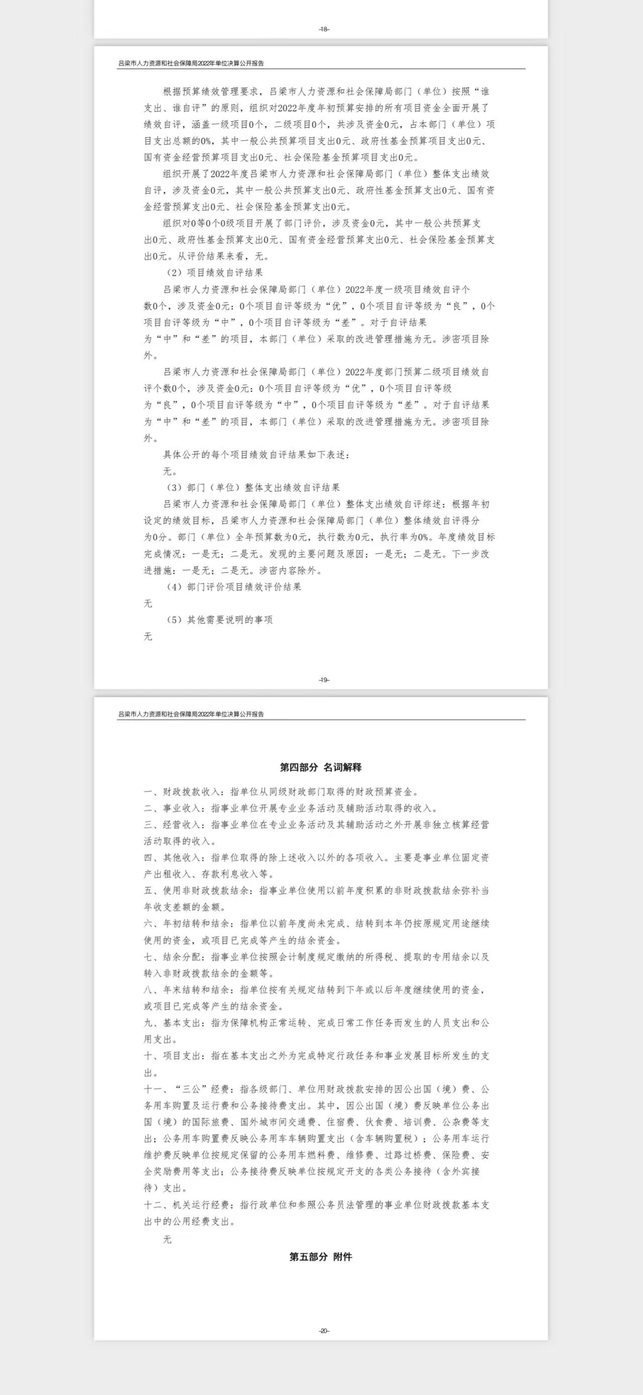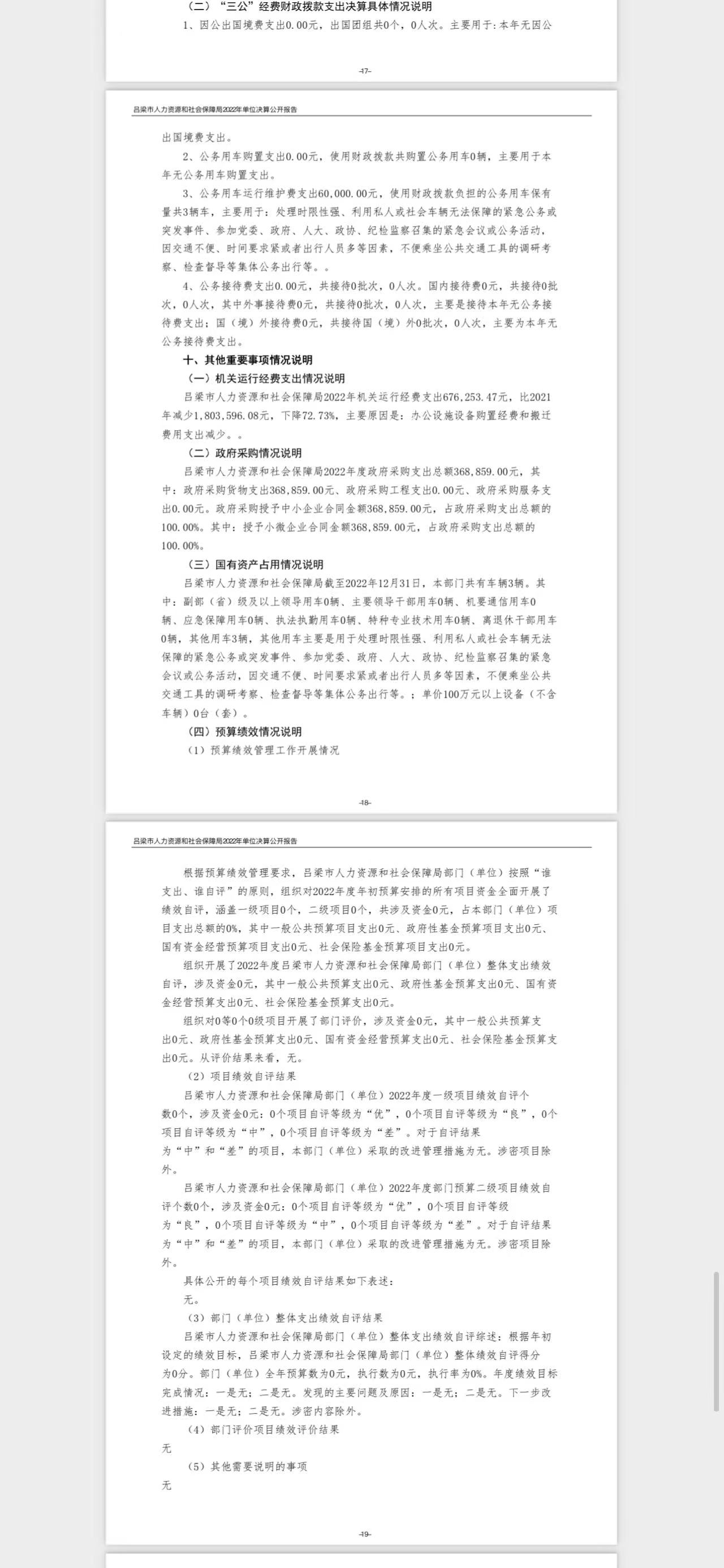 吕梁市人力资源和社会保障局2022年度单位决算公开