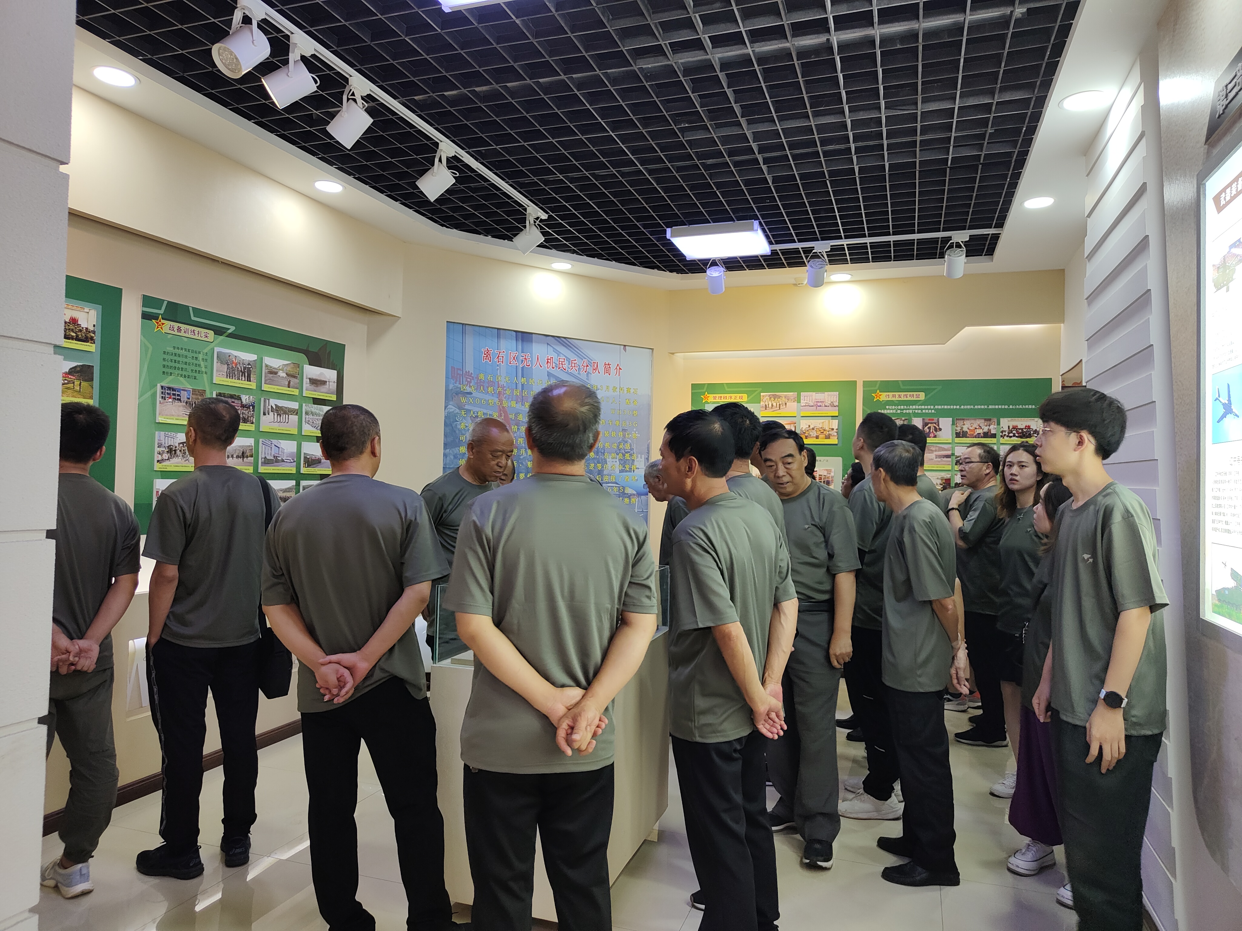 射击靶场上,大家仔细听取打靶训练的操作规程,认真掌握相关知识,一个个精神饱满,跃跃欲试。随后的分组实弹射击中,打靶人员列队、卧倒、握枪、瞄准,神情专注,每个动作都力求做到标准规范 ,出色的完成了实弹射击训练。此外,还参观了离石区武装部人民武装工作史馆。