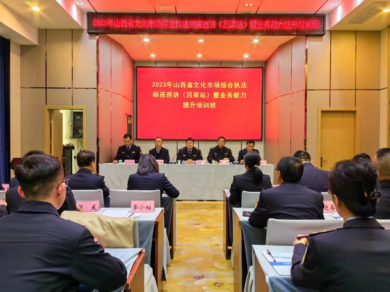 为进一步加强文化市场综合执法队伍规范化建设,提升一线执法人员案件办理和案卷制作水平。11月7日,山西省文化市场执法师资巡讲(吕梁站)暨业务能力提升培训班在吕梁市黄金水岸大酒店举办。山西省文化和旅游厅文化和旅游市场综合执法监督局局长艾献计、一级调研员梁瑞廉、四级调研员贾彦宏,吕梁市文化和旅游局副局长郭雄、市文化市场综合行政执法队队长王新平出席开班仪式。全市各级文化市场综合行政执法队主要负责人及业务骨干80余人参加了培训。