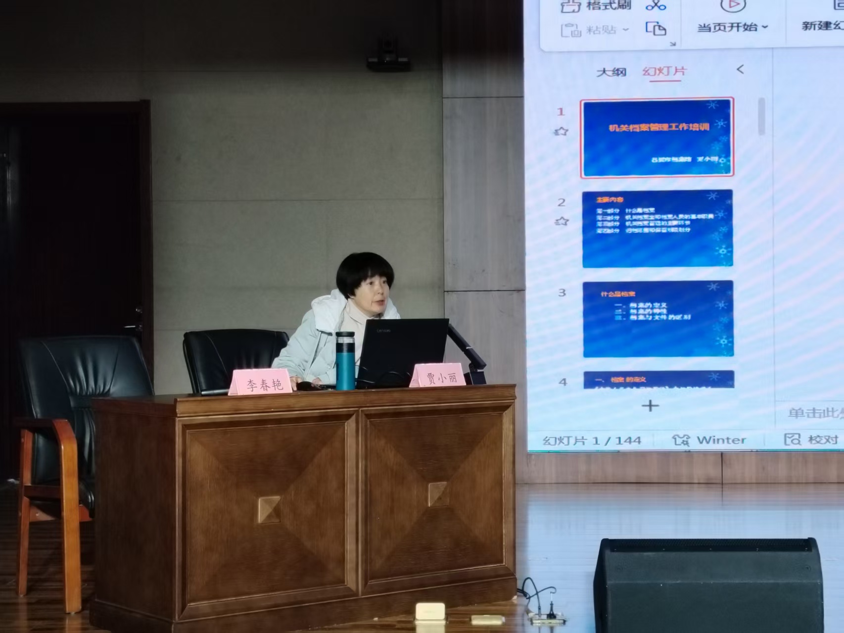 贾小丽科长紧扣档案工作核心要求,聚焦《档案法》及相关配套政策解读,以理论讲解与实操案例相结合的方式,围绕档案收集、分类、整理、保管等基础环节,重点讲解档案规范化管理、档案安全防护等关键内容,针对档案归档不规范、保管不当等常见问题进行针对性剖析,并通过典型案例分享等形式,帮助参训干部理清工作思路、破解实操难题。