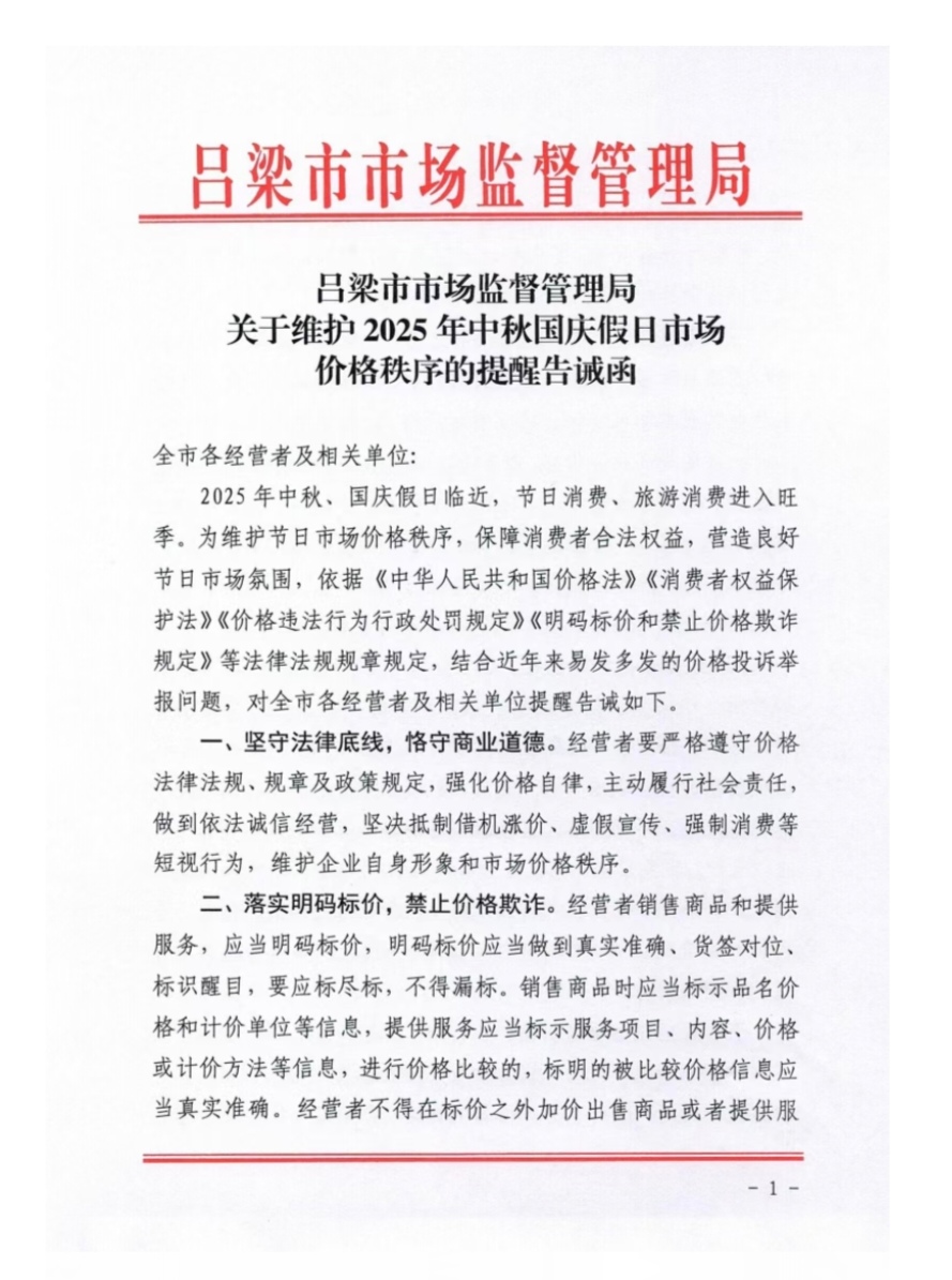 来源:吕梁市市场监督管理局 更新时间:2025-09-29