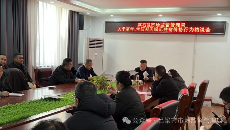2025年12月16日,离石区市场监督管理局召集辖区40余家酒店宾馆住宿经营单位,召开了规范考研期间住宿价格行为提醒约谈会。