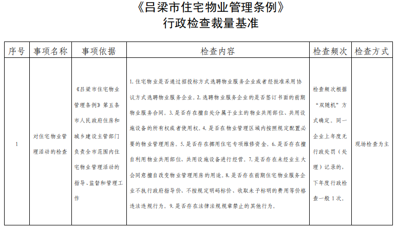 附件:1.《吕梁市住宅物业管理条例》行政检查裁量基准