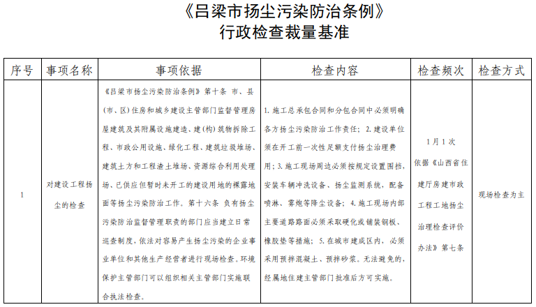 3.《吕梁市扬尘污染防治条例》行政检查裁量基准