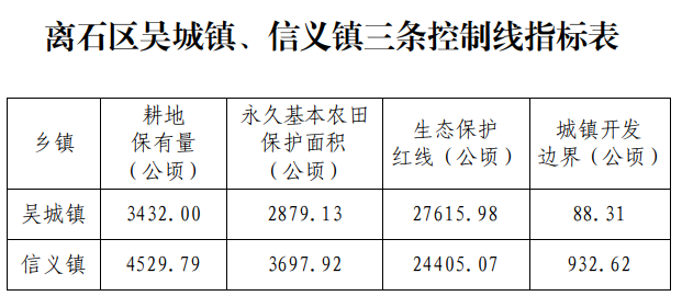 附件:1.离石区吴城镇、信义镇三条控制线指标表