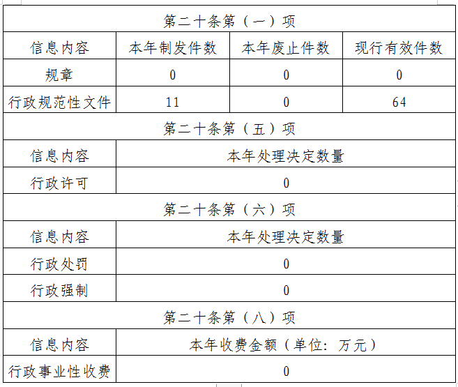 本年度报告根据《中华人民共和国政府信息公开条例》(国务院令第711号,以下简称《条例》)和国务院办公厅政府信息与政务公开办公室《关于印发中华人民共和国政府信息公开工作年度报告格式的通知》(国办公开办函〔2021〕30号)的要求编制,全文包括总体情况、主动公开政府信息情况、收到和处理政府信息公开申请情况、因政府信息公开工作被申请行政复议和提起行政诉讼情况、政府信息公开工作存在的主要问题及改进情况、其他需要报告的事项。 本报告中所列数据的统计期限从2022年1月1日起至2022年12月31日止。