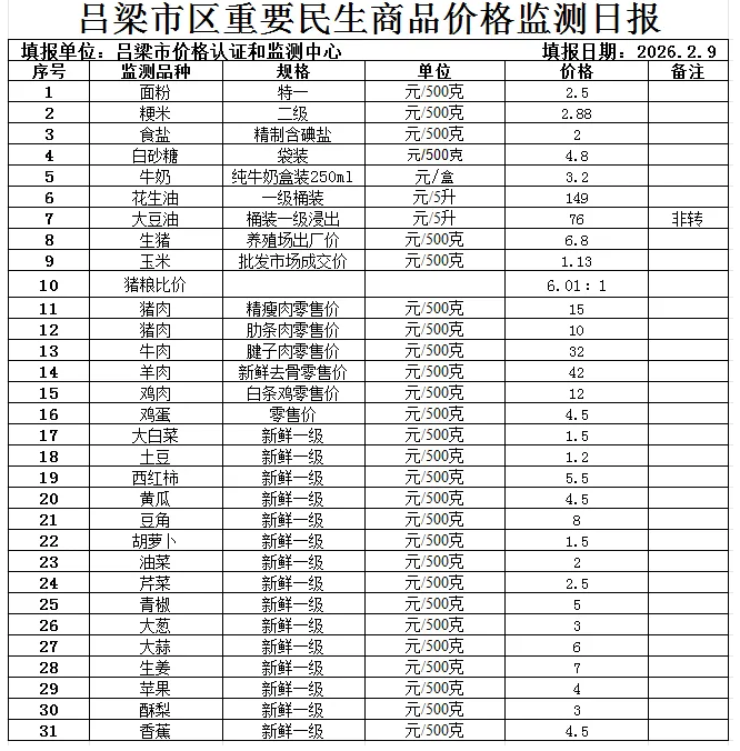 来源:吕梁市价格认证和监测中心 更新时间:2026-02-10