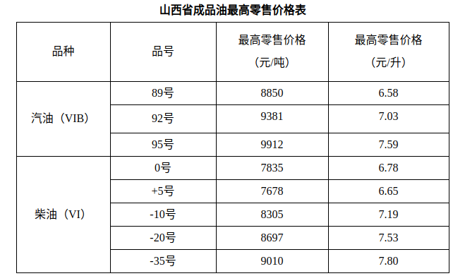 根据国家发展改革委门户网站“新闻动态--新闻发布”公布的成品油调价信息,自2026年2月24日24时起,山西省内汽、柴油价格(标准品)每吨分别上调175元、170元(具体价格见附表)。98号汽油价格,按照《国家发改委关于降低国内成品油价格的通知》(发改电[2015]10号)规定,由成品油生产经营企业根据市场情况自主制定具体价格。普通柴油(标准品)最高零售价格按照同阶段标准的车用柴油价格确定。其他相关价格政策按照《国家发展改革委关于进一步完善成品油价格形成机制有关问题的通知》(发改价格[2016]64号)规定执行。