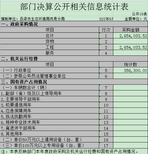 | 标 题:吕梁市生态环境局岚县分局2021年度部门决算公开情况说明 | |