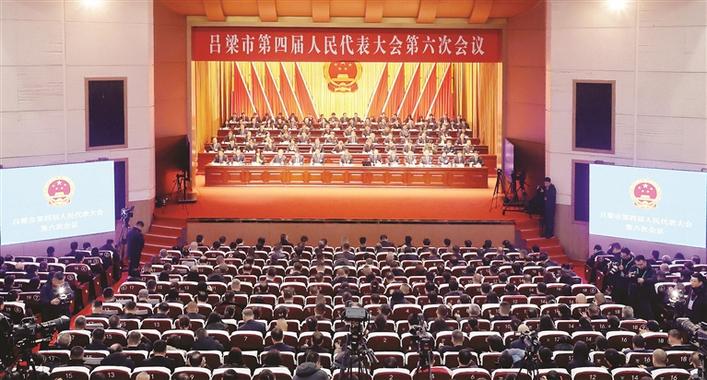 图为吕梁市第四届人民代表大会第六次会议闭幕会场。 记者 薛志雄 摄