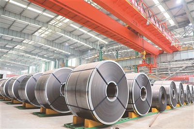 晋钢控股集团投资30亿元的国内首套具有完全自主知识产权的1450mm冷连轧生产线,产品广泛用于高端家电、汽车、光伏发电等行业。图为该集团生产的产品。(张华钰 摄)