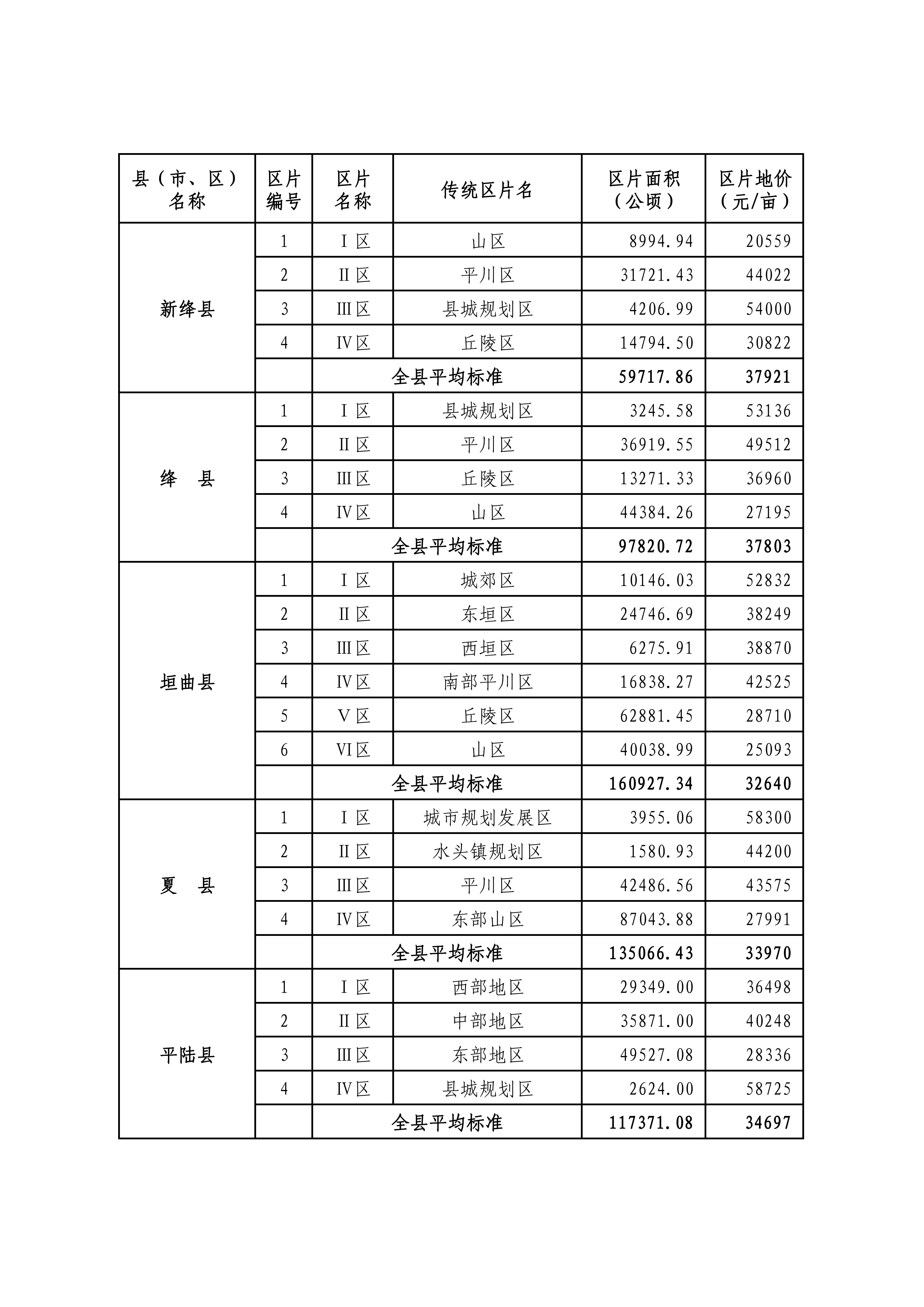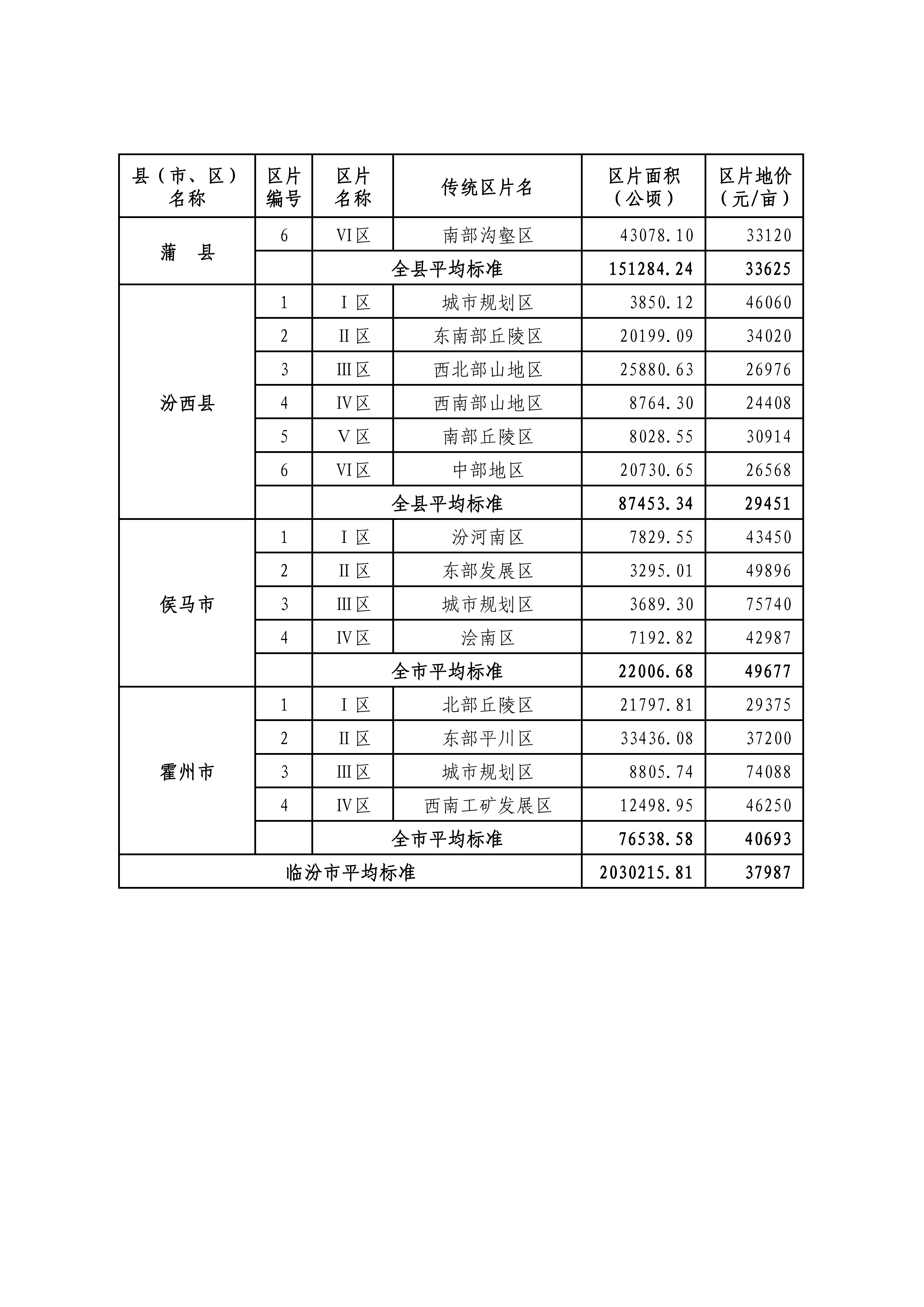 附件:山西省征地区片综合地价标准汇总表