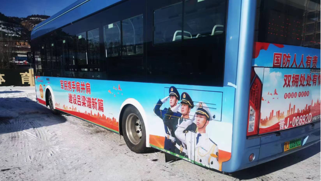 为持续弘扬拥政爱民、拥军优属光荣传统,吕梁市双拥办对109路公交车进行了提升改造,打造了“双拥主题公交”。“双拥主题公交”车辆外观和车厢内等显著位置都融入了双拥元素,车身上印有“军民携手肩并肩、建设吕梁谱新篇”“国防人人有责、双拥处处有情”等双拥宣传语,车内放置了双拥知识宣传手册等,电子屏循环滚动播放双拥宣传知识;“双拥主题公交”途经机场、火车站、退役军人事务局、双拥一条街等重要地点,沿线站台张贴有“弘扬双拥光荣传统、加强军政军民团结”等内容的宣传板报,让乘客在日常乘车中接受国防和双拥教育,也让“双拥公交专线”在便于军人军属和退役军人出行的同时,成为我市移动的双拥宣传平台。“双拥主题公交”就像一座流动的桥梁,连接着社会各界与军队和退役军人的心,传递着温暖与关爱,让市民在乘车途中就能切实感受到拥军文化,感受吕梁作为全国双拥模范城的城市魅力;让双拥宣传教育、国防教育与群众‘零距离’接触,进一步彰显全社会尊军崇军的良好氛围。