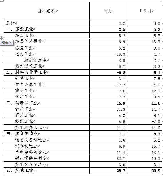 9月份,全省能源工业增加值同比增长2.5%,材料与化学工业下降0.8%,消费品工业增长15.9%,装备制造业增长7.1%,其他工业增长28.7%。