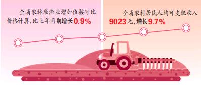粮食产量保持总体稳定、种植结构不断优化、畜牧业生产逐步恢复、农产品加工业持续较快发展……前三季度,我省农业生产增速回升,全省农林牧渔业增加值比上年同期增长0.9%,较上半年加快1.8个百分点;牛奶产量67.5万吨,增长16.0%;禽蛋产量76.4万吨,增长2.3%;瓜果产量49.5万吨,增长3.9%。