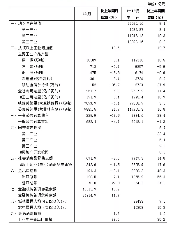 全年全省规模以上工业增加值比上年增长12.7%,比全国快3.1个百分点;两年平均增长9.1%,比全国快3.0个百分点。从三大门类看,采矿业增长10.8%,制造业增长17.5%,电力、热力、燃气及水生产和供应业增长7.6%,制造业带动作用明显。从煤与非煤看,煤炭工业增长11.2%,非煤工业增长14.5%,增速明显快于煤炭工业。