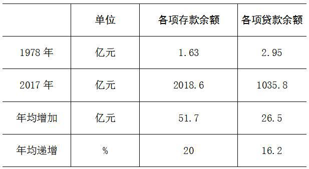 改革开放以来,伴随着企业效益显著提高和居民收入快速增长,全市金融事业迅速发展,存贷规模同步扩大。2017年末,全市金融机构各项存款余额达到2018.6亿元,比1978年末增长1237.4倍,年均递增20%;金融机构各项贷款余额达到1035.8亿元,比1978年末增长350.4倍,年均递增16.2%。