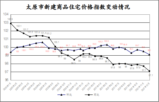 根据70个大中城市商品住宅销售价格变动情况显示,2021年12月,太原市新建商品住宅价格同比下降2.9%,环比下降0.9%,同比连续16个月下降,环比连续5个月下降。根据商品房销售额与销售面积之比看,2021年,全省商品房销售额与销售面积之比为6775元/平方米,同比下降3.5%,环比下降1.5%,其中商品住宅销售额与销售面积之比为6689元/平方米,同比下降3.7%,环比下降1.6%。