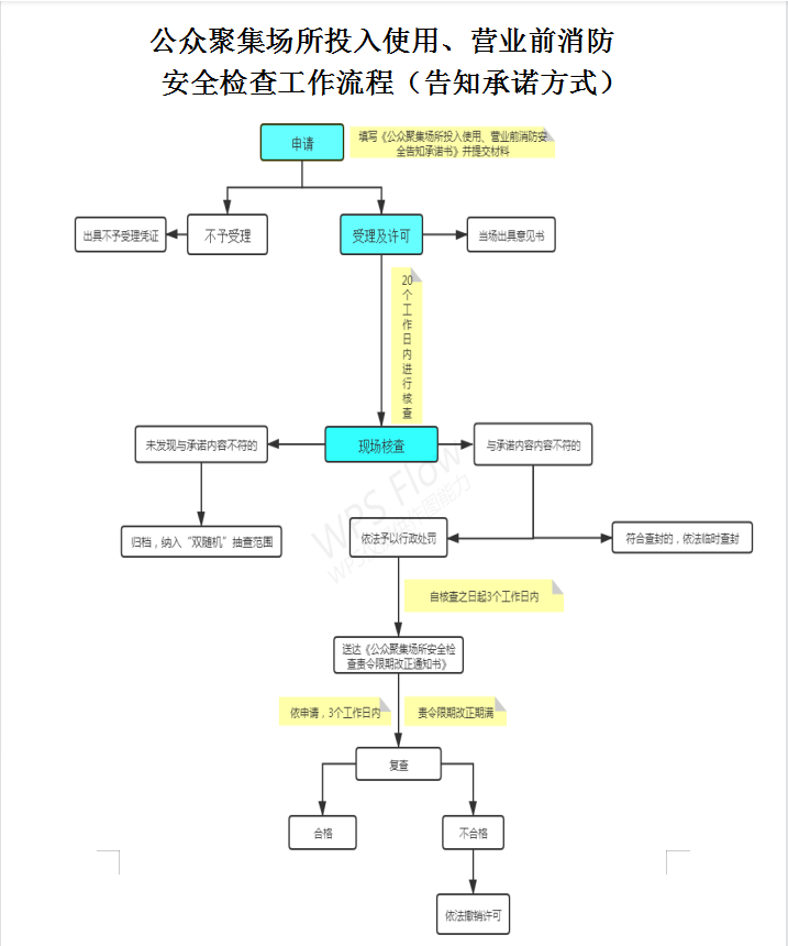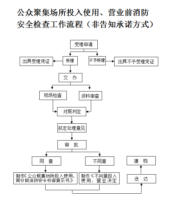 行政许可:公众聚集场所投入使用、营业前消防安全检查意见书。