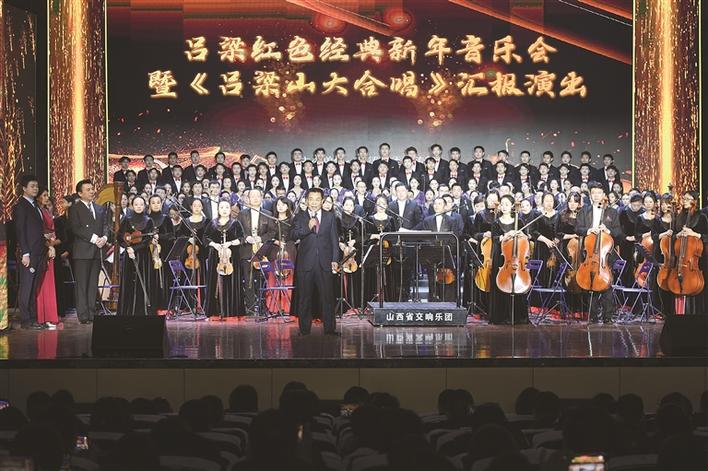 音乐会现场座无虚席,气氛温暖而热烈。伴随着管弦乐《红旗颂》的优美旋律,音乐会拉开了序幕,女声独唱《习近平总书记来到咱吕梁》、民乐与女生组合《南泥湾》、手风琴独奏《解放区的天》、女声独唱《人说山西好风光》、管弦乐《我爱你中国》、吹打乐《打枣》、女声二重唱《吕梁颂》等节目或悠扬动人,或恢宏磅礴,或欢乐喜庆,不时赢得现场观众阵阵掌声。《吕梁山大合唱》《汾酒故乡 英雄吕梁》将现场气氛推向高潮。整场音乐会曲风多元,精彩纷呈,既营造了喜庆祥和的浓厚节日氛围,也满足了广大市民对高雅艺术的追求,凝聚了团结进取、奋发图强的强大精神力量。