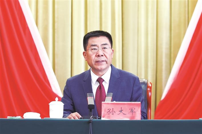 图为市委书记孙大军代表市委常委会向全会作工作报告。 记者 王益炜 薛志雄 摄