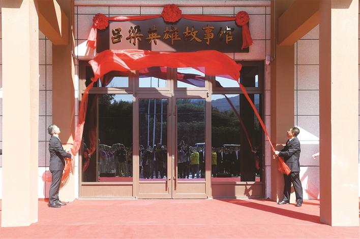 图为孙大军、熊义志为吕梁英雄故事馆揭牌。 记者 王益炜 摄