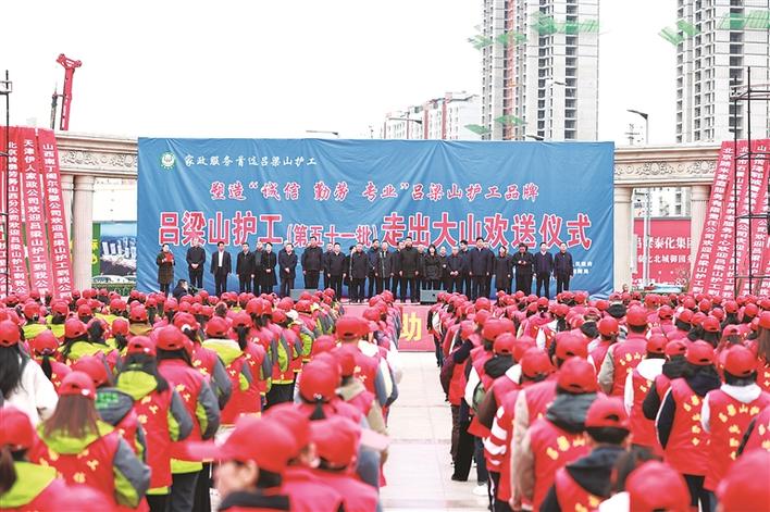 图为吕梁山护工(第五十一批)走出大山欢送仪式现场。 记者 侯利军 摄