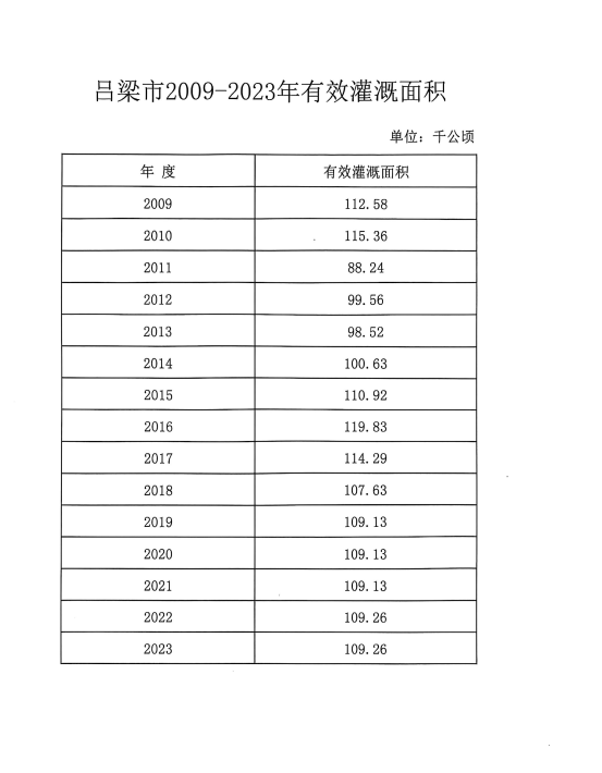 | 回复附件 | 吕梁市2009年-2023年工业废水排放量、二氧化硫排放量和颗粒物排放量.xlsx 吕梁市2009-2023年有效灌溉面积.png |