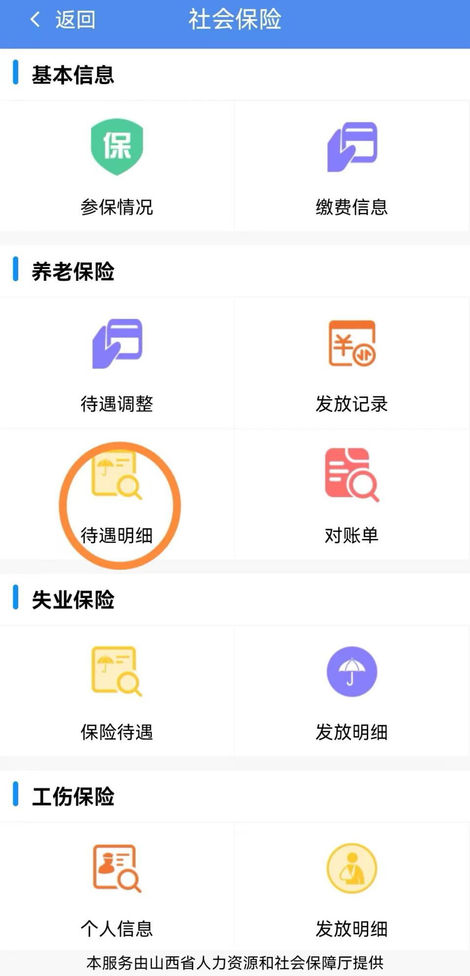 第三步:点击“待遇明细”,即可进行养老金查询。