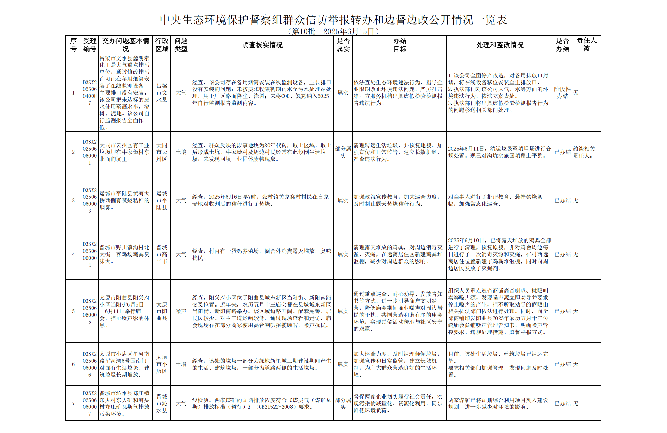 附件:中央生态环境保护督察群众信访举报转办和边督边改公开情况一览表(第十批)